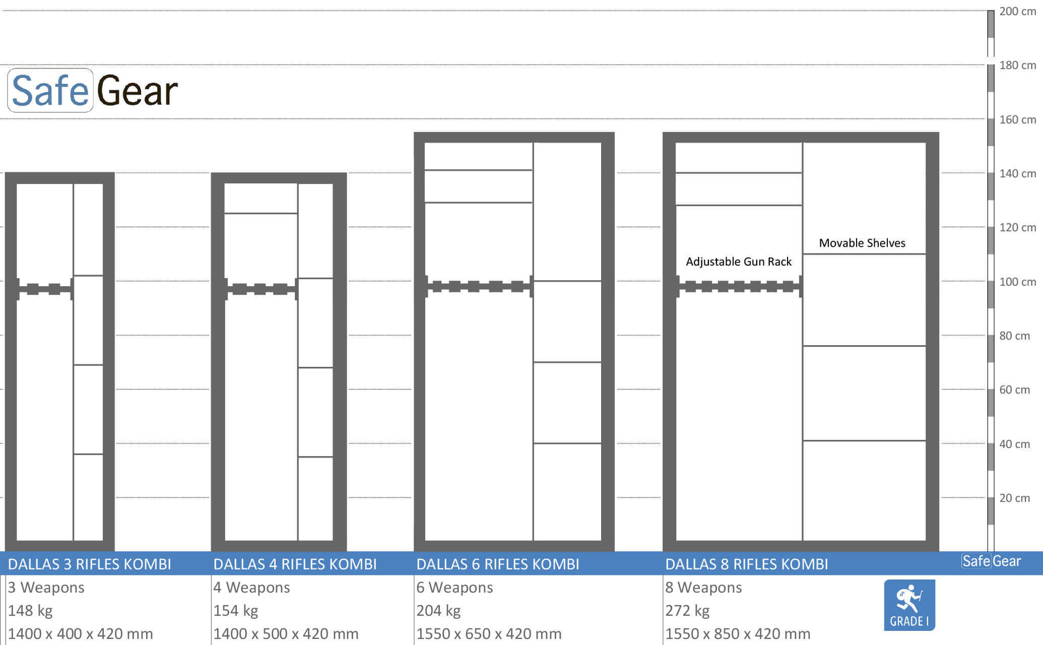 Ideaal voor het opbergen van wapens, pistolen, munitie en meer jachtmateriaal. Geschikt binnenshuis, bij schietbanen, politiekantoren of in militaire kazernes.