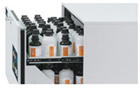 A bottom collection sump is a piece of possible interior equipment for all of the chemical storage cabinets we offer. The collection of leakages is crucial for the safe storing of chemicals.