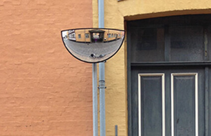 Halve Dome - Halve dome spiegels bieden overzicht met een hoek van een 180° en worden gebruikt als een goed perspectief nodig is. De spiegel is geschikt voor winkels, magazijnen, productielijnen, kantoren en instellingen.