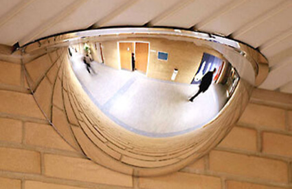 Deze veiligheidsspiegels geven leerlingen en leerkrachten de kans een optimaal zicht te hebben of de schoolgangen en grote ruimtes. Zo kunnen pesterijen, asociaal gedrag of verwondingen snel gedetecteerd worden.