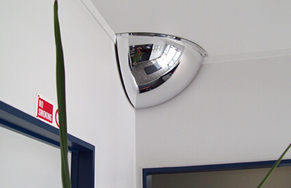 Veiligheidsspiegels worden vaak over het hoofd gezien maar zijn een goedkope oplossing om kantoren, scholen en ziekenhuizen te beveiligen. Met ronde spiegels en koepelspiegels neemt de zichtbaarheid in grote ruimtes, gangen en in verborgen hoekjes toe.